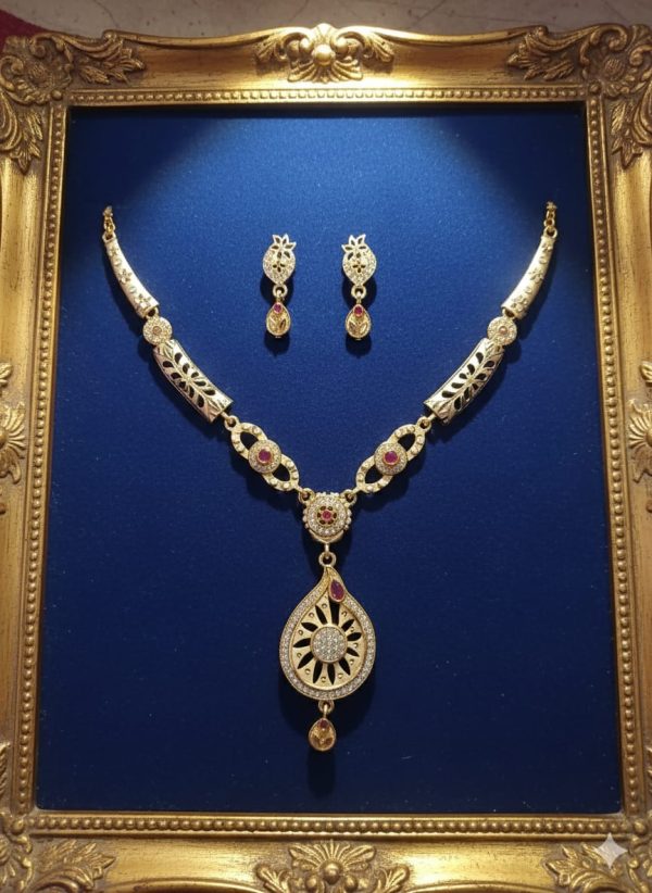 This elegant Gold Plated Necklace Set is designed to add a touch of timeless beauty to your look. Crafted with premium-quality gold plating, it offers a rich shine and long-lasting finish. Perfect for weddings, parties, festivals, and special occasions, this set enhances both traditional and modern outfits.