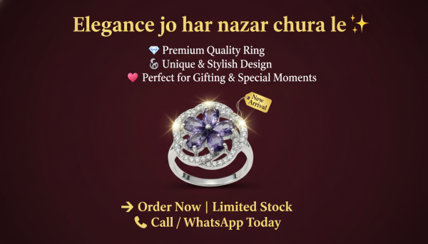 Yeh artificial ring high-quality bast metal se bani hui hai, jo dekhne mein bilkul asli ring jaisi lagti hai. Is par ki gayi fine finishing aur attractive design ise daily wear aur party wear dono ke liye perfect banata hai. Ring halki hone ke saath-saath comfortable fit deti hai. Iska colour long-lasting hai aur sahi care ke saath zyada time tak chamak banaye rakhta hai. Kam price mein stylish look chahne walon ke liye yeh ring best choice hai.